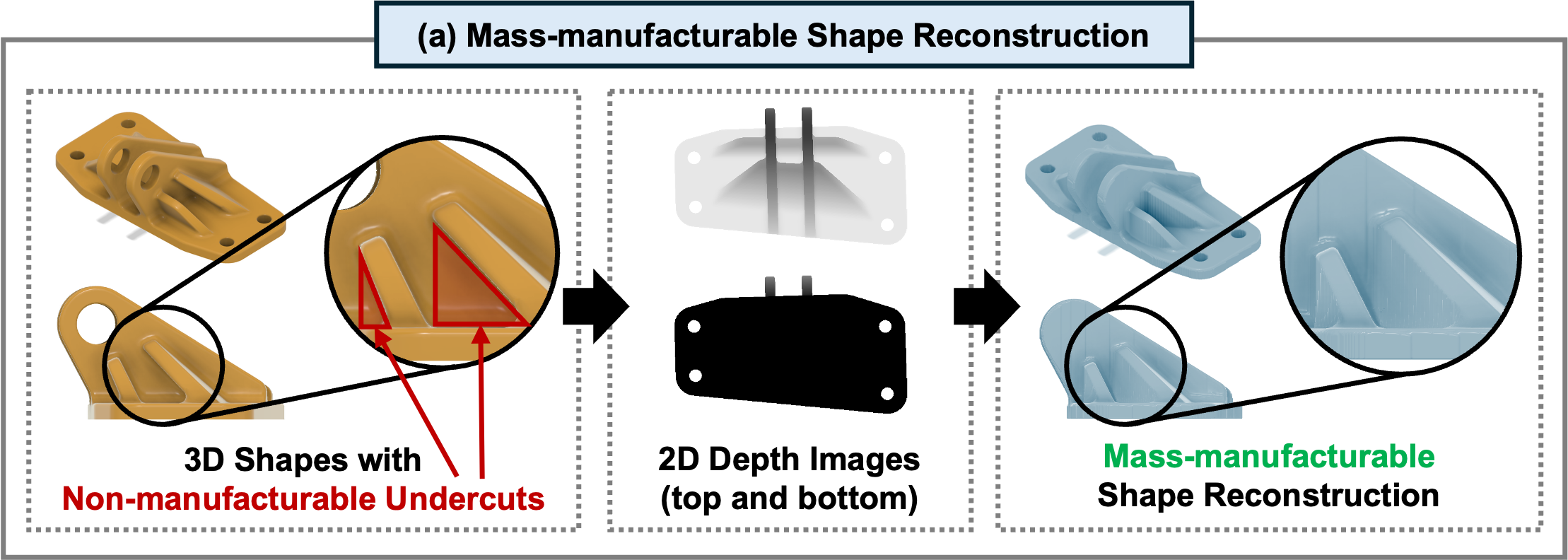 Here’s the key insight: depth images naturally encode manufacturing constraints.
